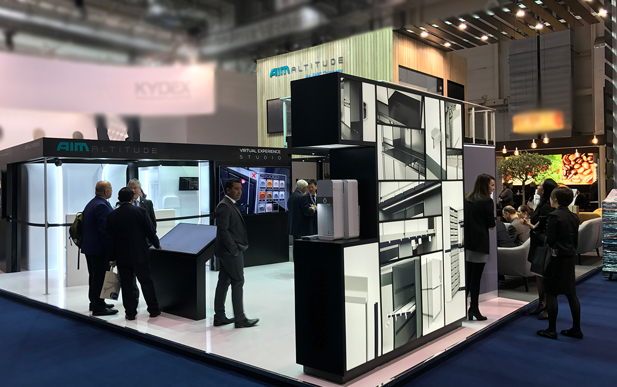 Visitors to the stand could experience physical feedback blended with digital customisation of an array of units. Trims and finishes, as well as ‘feature’ possibilities, are enabled for visitors to see in real time how different products could look within the cabin architecture.” –Ross Burns, Lead Industrial Designer at Aim Altitudes Cabin Interior Division.