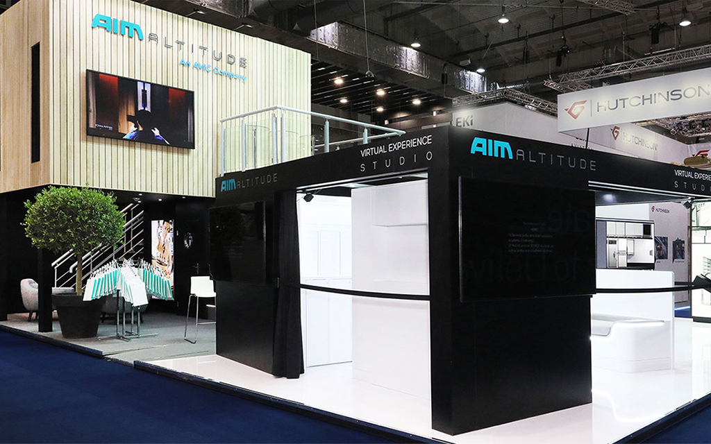 Aim Altitude set us the challenge to pioneer a space that reflected their high standards, expertise and experience at AIX. As the leading event for aircraft interiors which attracts more than 14,000 industry professionals, Aim Altitude’s 160sqm space needed to create the opportunity for networking and professional conversation, with a focus on their latest product range.