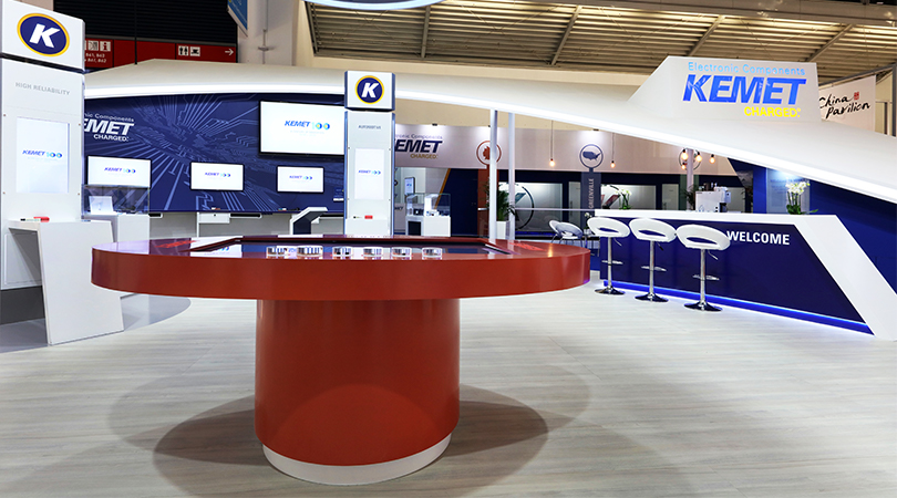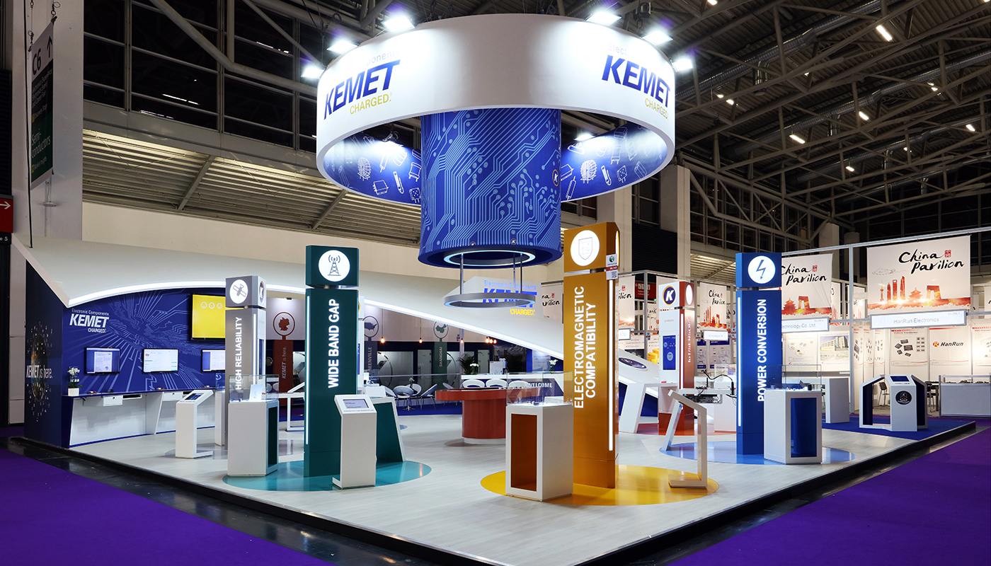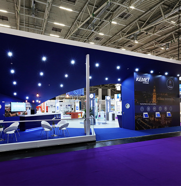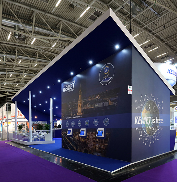 Leading global supplier of electronic components, Kemet Electronics really impressed with this year’s brief as they celebrated their company centenary at the event. The challenge set was to deliver a consistent and memorable brand event, so we focused on new ways to elevate the new Kemet brand, applying exciting display technologies, and creating an open look and feel. With a 182 sqm space to transform and a 3-month turnaround from sign-off to delivery, the space needed to have a wow factor with a competitive edge. Using varying levels, strong brand colouration and a strategic layout to attract, impact and entice delegates in from around the stand.