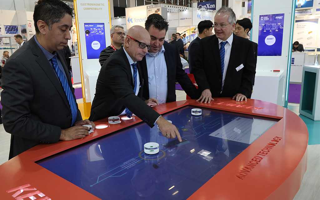 + The object recognition sat at the heart of the stand- A fun and functional way of presenting large amounts of information. Objects placed on a horizontal touchscreen trigger pre-programmed digital content for users to learn more about KEMET Electronics and their products. Our client found it to be a priceless tool for enhancing their marketing communications at the event.