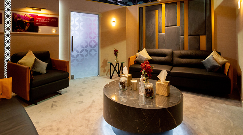 Every detail had a story to tell within the design. Materials selection was an important factor featuring marble surfaces, glossed metals and plush furniture combined with an intricate lighting design, harmonised the different spaces to reflect QA’s hallmark qualities of luxury, elegance, and calm. Even small details like flower arrangements were carefully considered decisions.